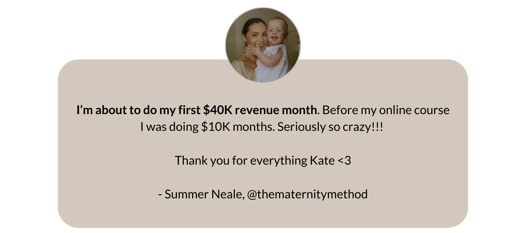 Before working with me, Summer was stuck at $10K months. We had a $30K first launch and implemented evergreen sales funnels. Now, she’s generating over $7K per month passively and had her first $40K month.