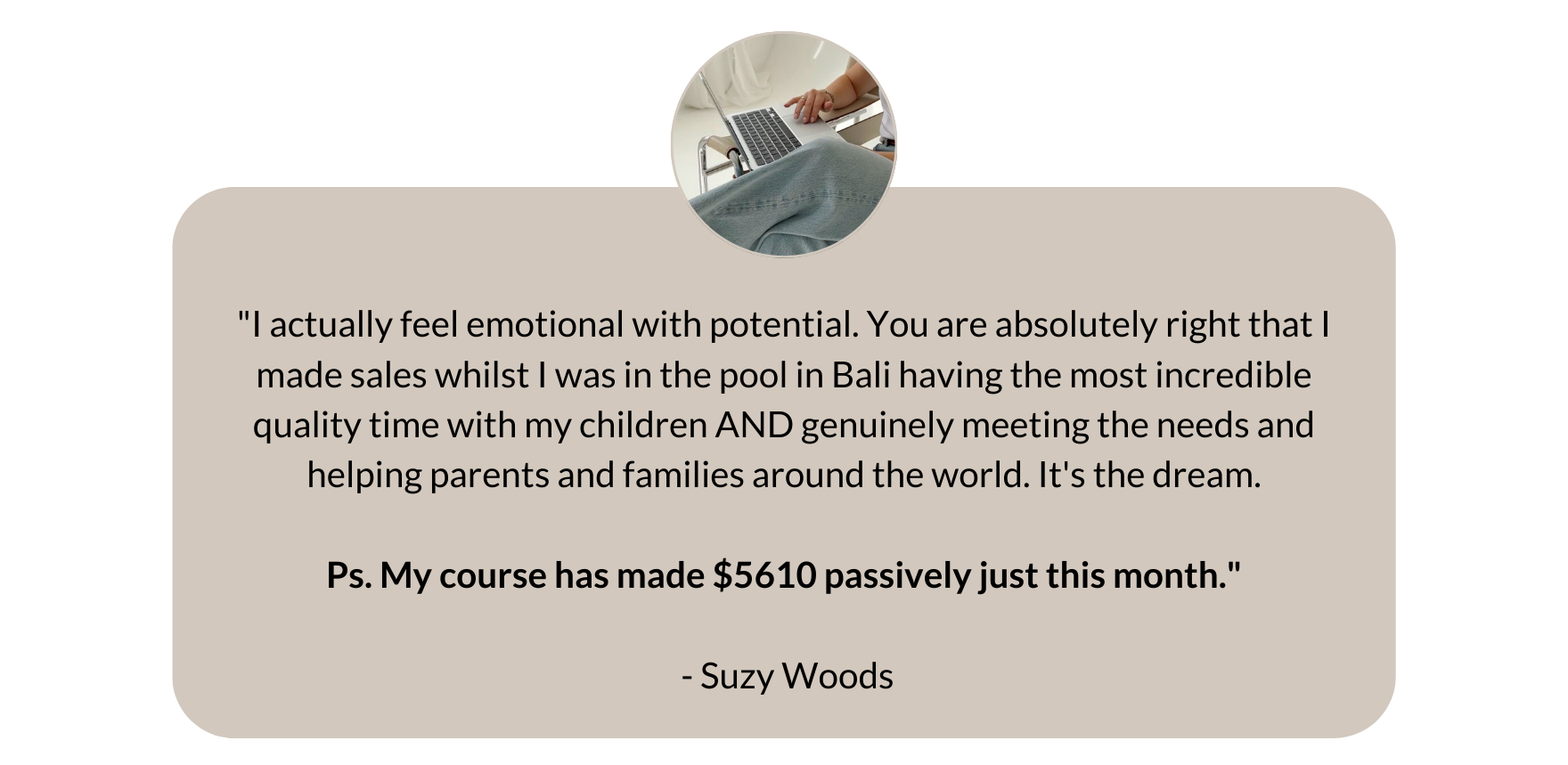 Before working with me, Suzi was overworked, exhausted, and stuck trading time for money. We launched her online course and built evergreen sales funnels. Four months later, she shared this: